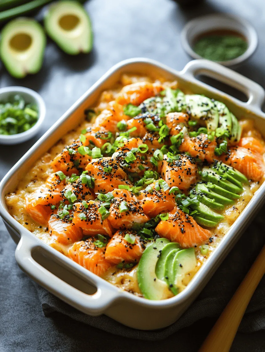 The ingredients in your Viral Spicy Salmon Sushi Bake not only come together to create a delicious meal but also offer numerous health benefits. Salmon, a key component, is rich in omega-3 fatty acids, which are essential for heart health and reducing inflammation. Additionally, salmon is a great source of high-quality protein, vitamins, and minerals, making it a powerhouse in any diet.